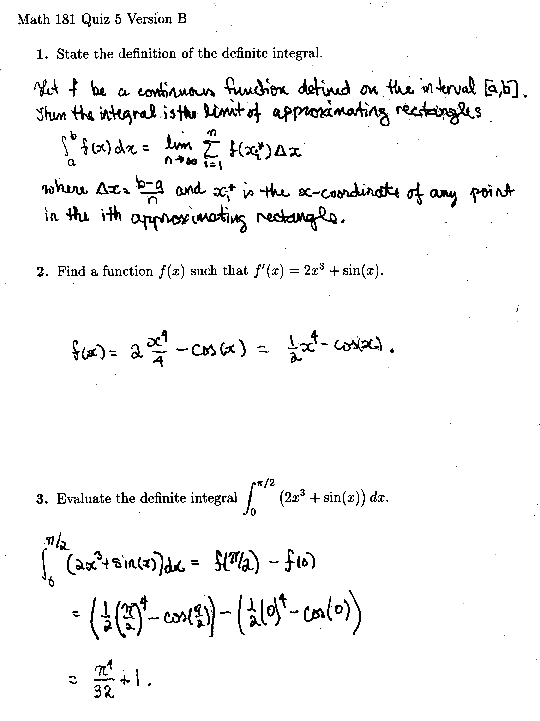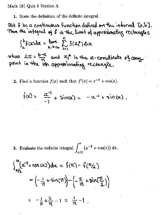 Mathematics 181 Quiz 5 Answers