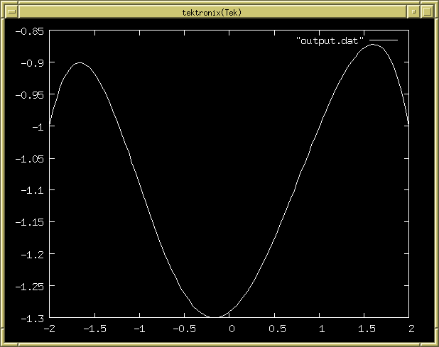 with boundary conditions y(−2)=−1 and y(2)=−1. The code boundary.c produced output for m=100 that when graphed looks like